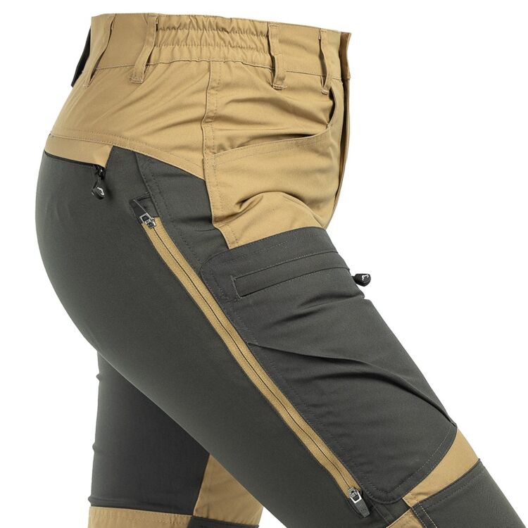 Active Stretch Byxan är vår populäraste byxa! På knä, knäveck och rumpa är byxan i DWR behandlad 4-vägsstretch, vilket gör byxan extremt följsam. Nertill är byxan förstärkt och med justerbart benslut och men kängkrok så den sitter perfekt runt kängan. På båda låren är det öppningsbara ventilationshål med mesh. Byxan är försedd med 5 fickor. En bak med dragkedja, två benfickor och två lårfickor med dragkedja.