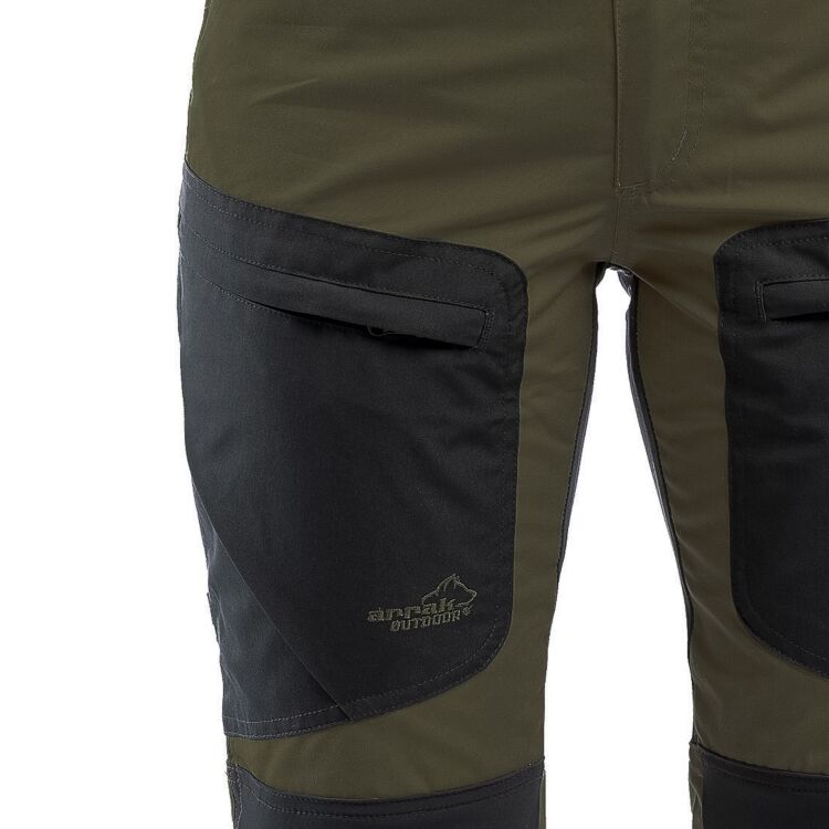 Active Stretch Byxan är vår populäraste byxa! På knä, knäveck och rumpa är byxan i DWR behandlad 4-vägsstretch, vilket gör byxan extremt följsam. Nertill är byxan förstärkt och med justerbart benslut och men kängkrok så den sitter perfekt runt kängan. På båda låren är det öppningsbara ventilationshål med mesh. Byxan är försedd med 5 fickor. En bak med dragkedja, två benfickor och två lårfickor med dragkedja.