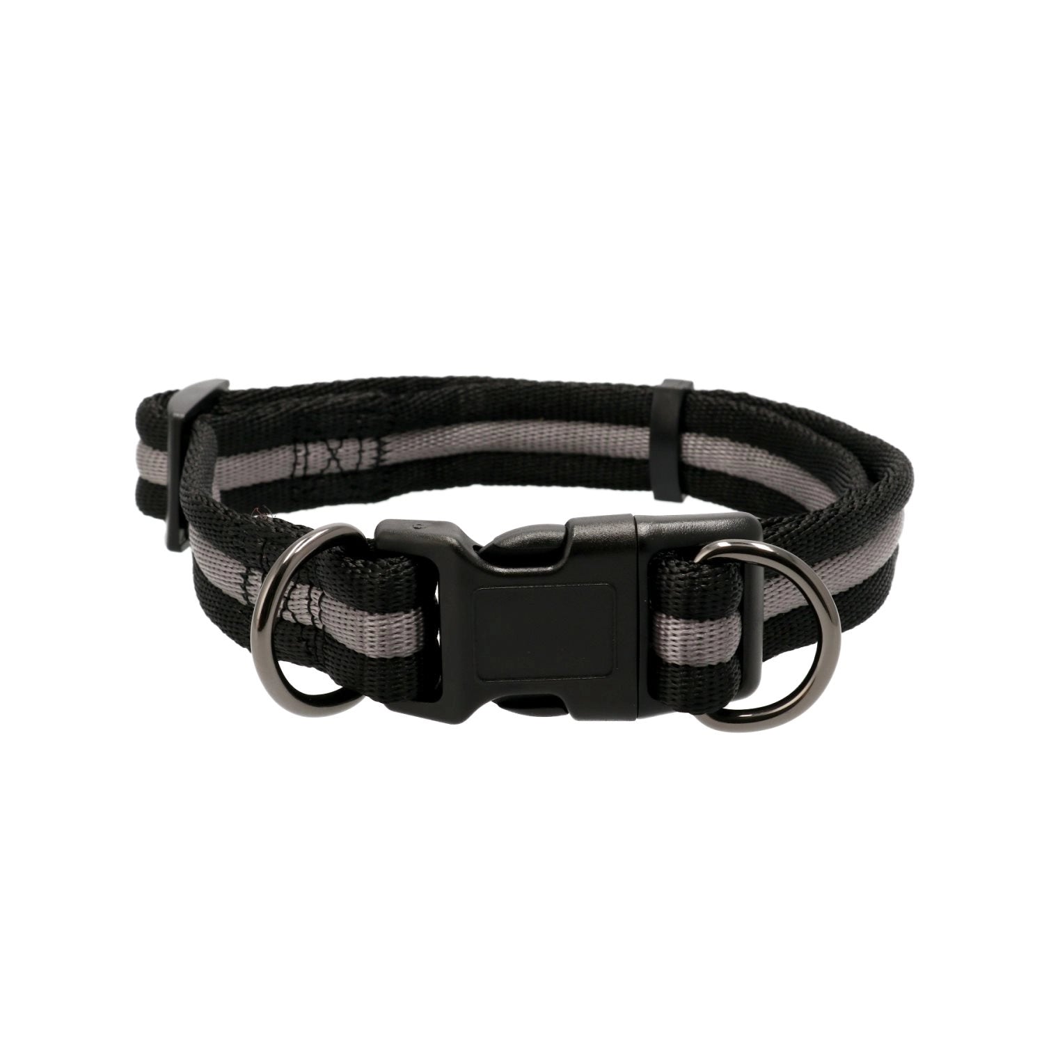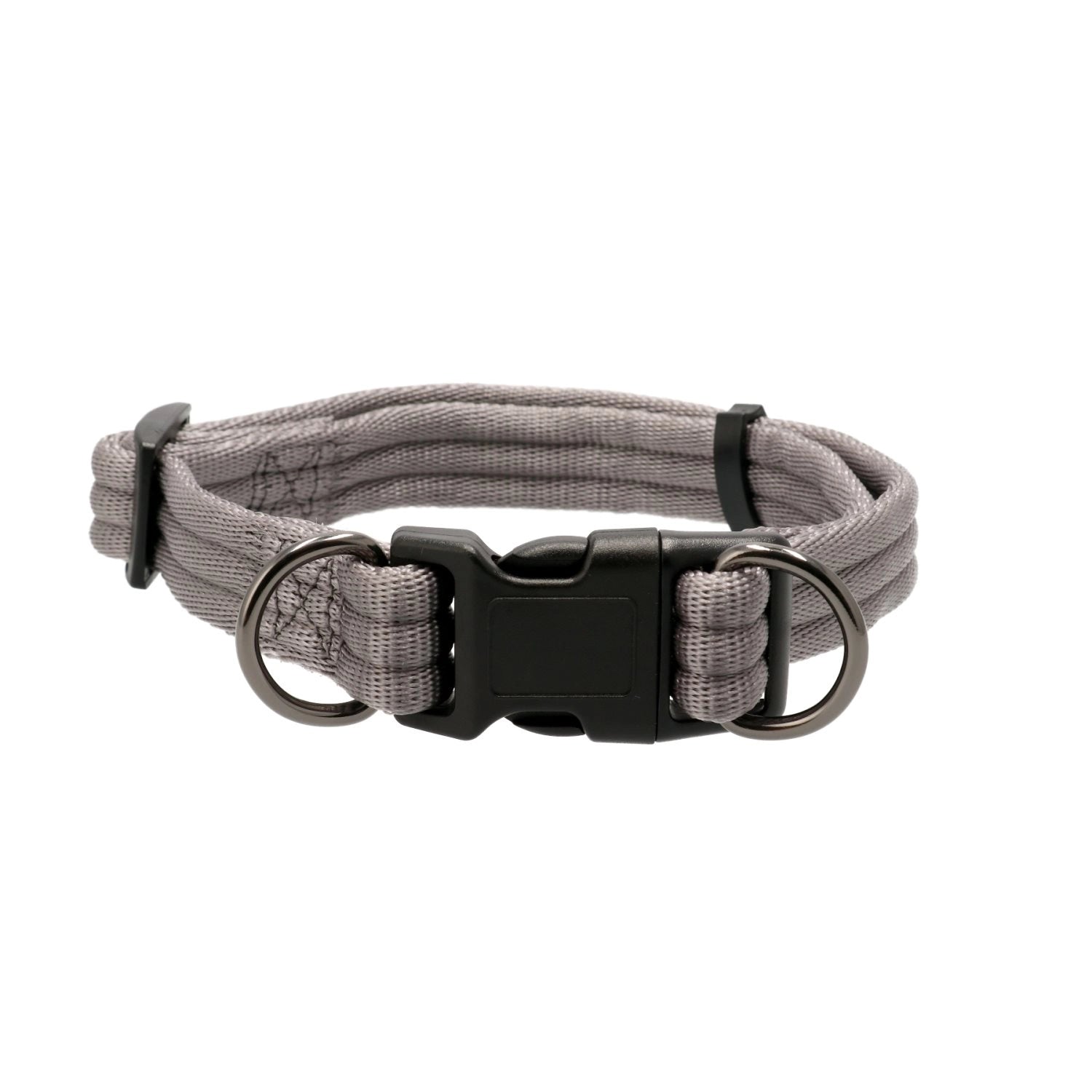 Rejält och mjukt halsband av s k valkband/kanalband. Kanalerna är fiberfyllda och gör det extra slitstarkt. Ställbart med klickspänne.