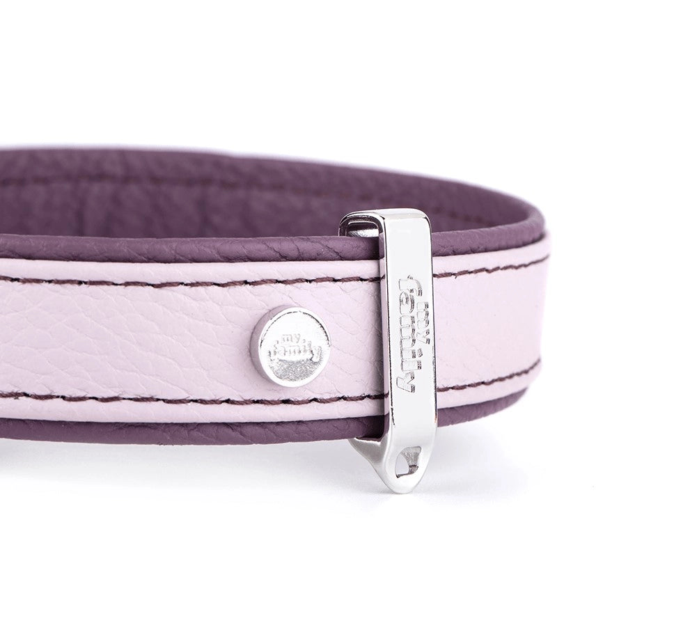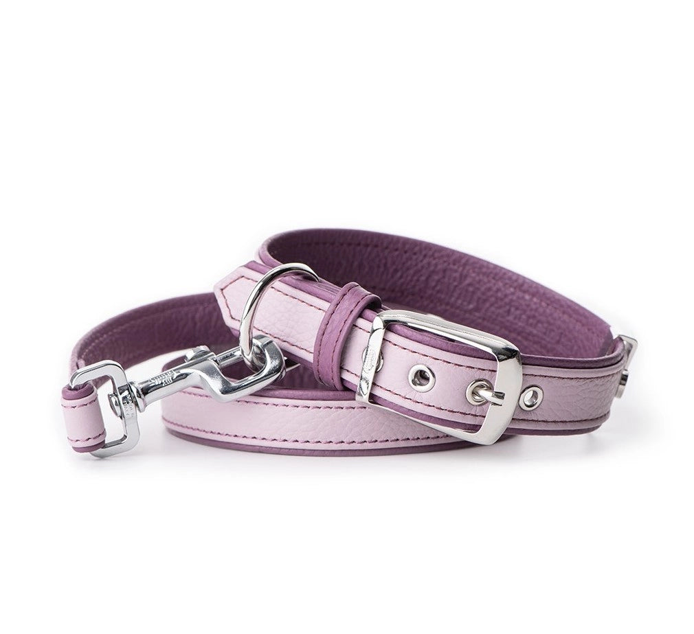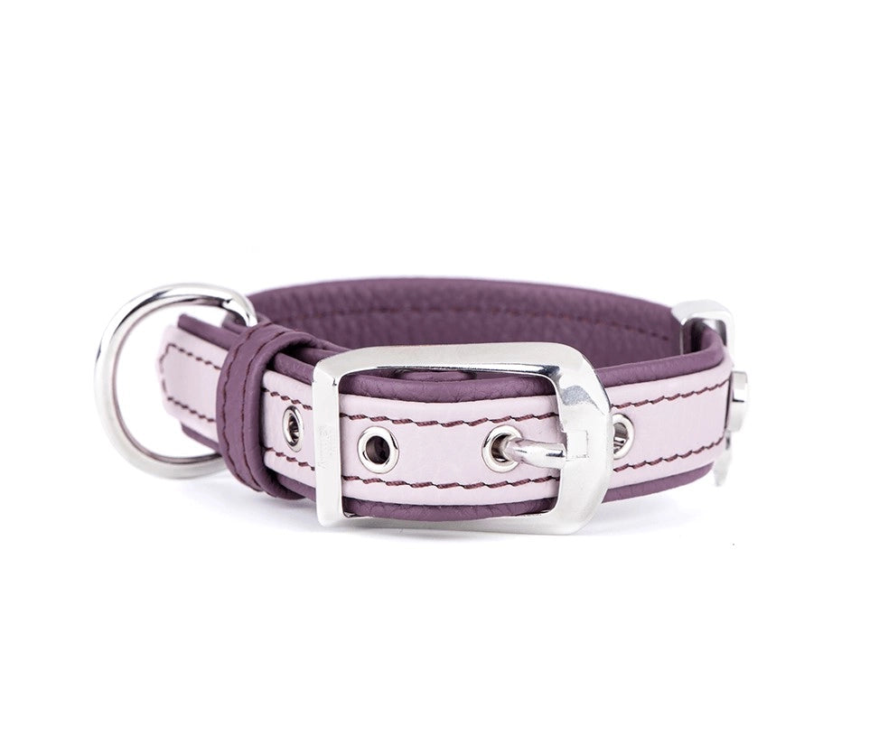Hundhalsband tillverkat av äkta italienskt läder med metalldetaljer.