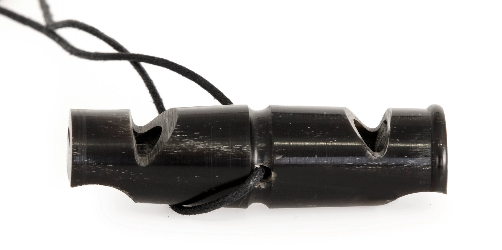 Visselpipa tillverkad av horn med dubbelton. Pipan är 7cm lång. Lämplig för inkallning på långa avstånd eller vid dirigering.