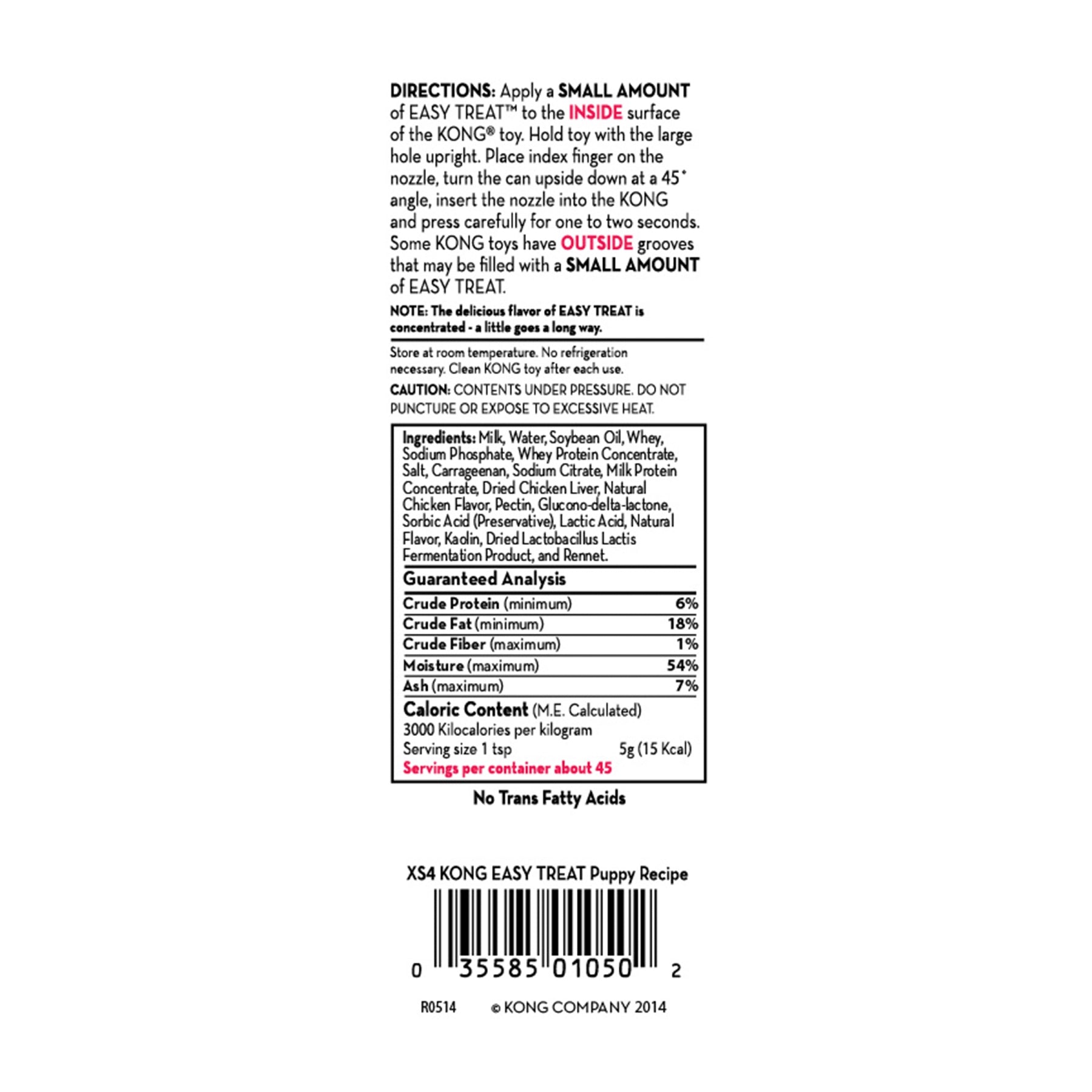 Smaskig belöningspasta med utsökt smak för fyllning av Kongs gummileksaker. Lätt att applicera utan att kladda tack vare spraytuben. Passar alla storlekar av hundar. Tips! Frys Kongleksaken med fyllningen inuti och din valp blir sysselsatt länge!