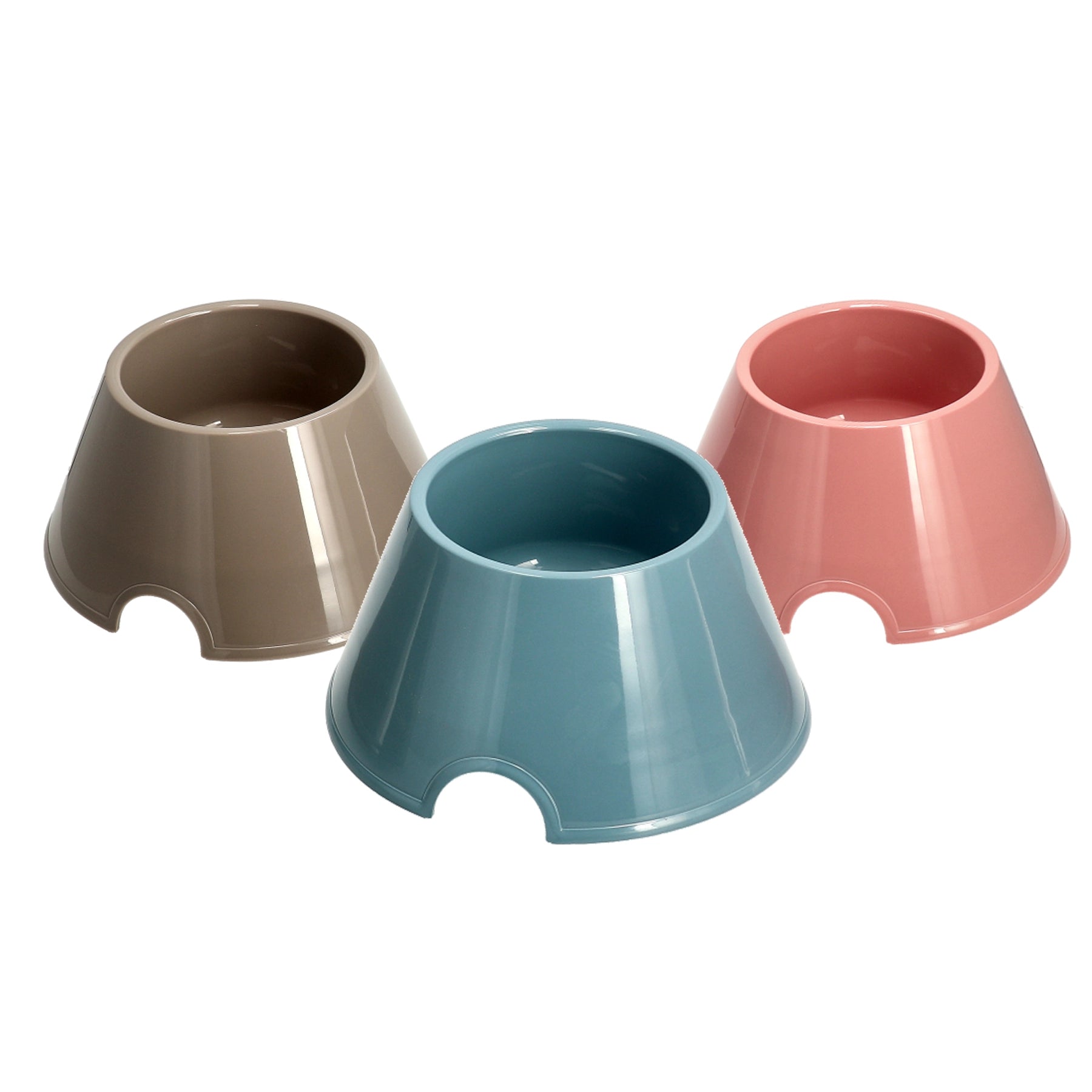 Mat- och vattenskål i plast, speciellt framtagen för hundar med långa öron. Skålen är utformad så att öronen hamnar utanför skålen när de äter eller dricker.