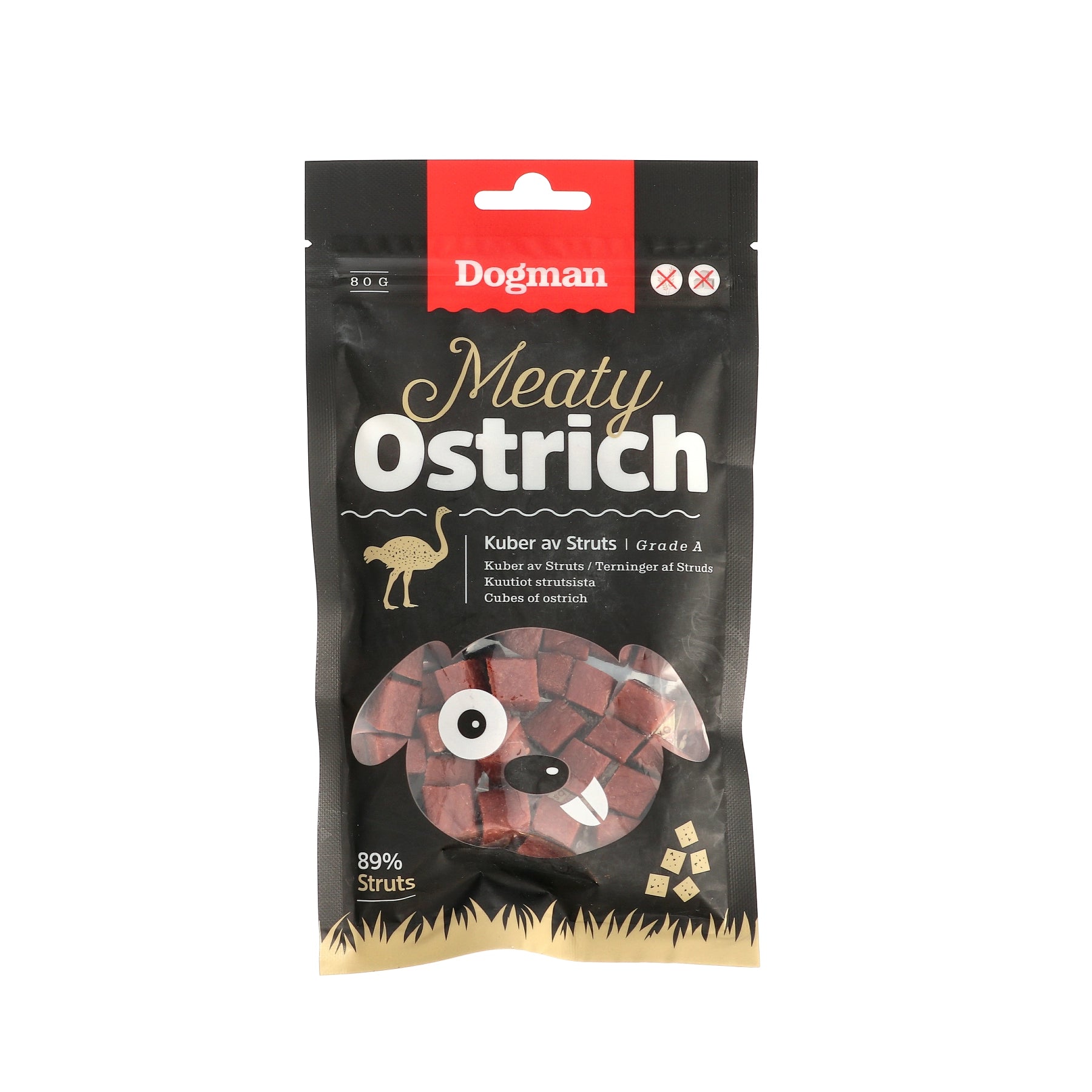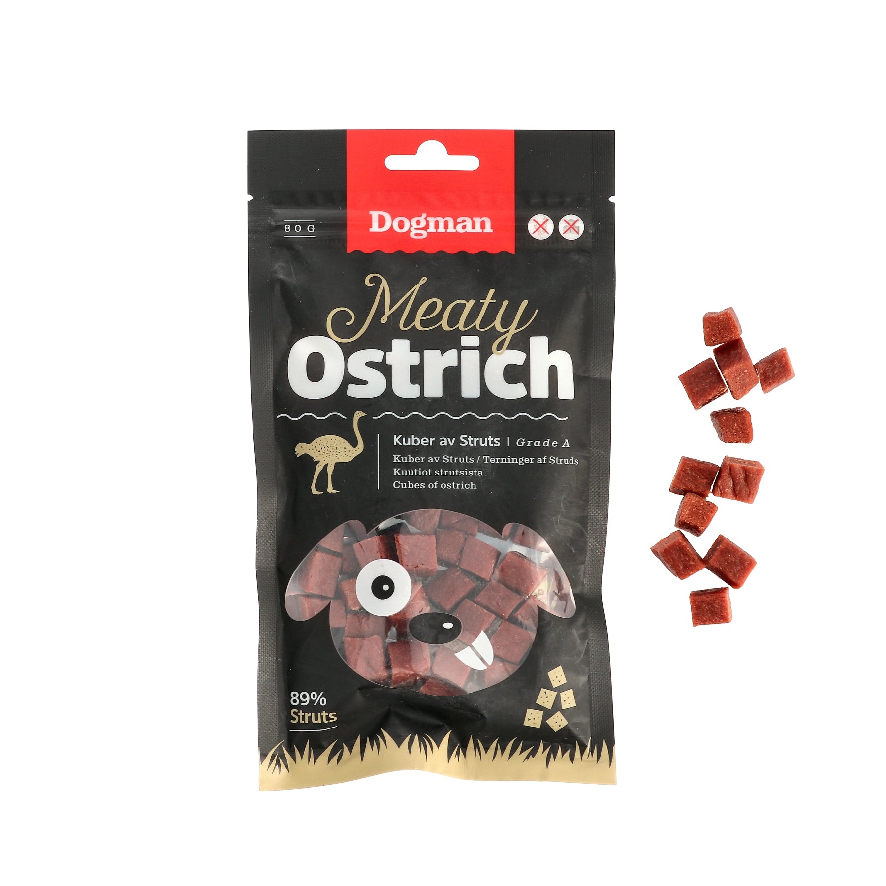 Smaskigt hundgodis av delikat strutskött som enda köttråvara. Perfekta belöningsbitar som passar utmärkt till känsliga eller kräsna hundar! Spannmålsfri och utan tillsatt socker. Ges som belöning vid sidan av en balanserad kost.