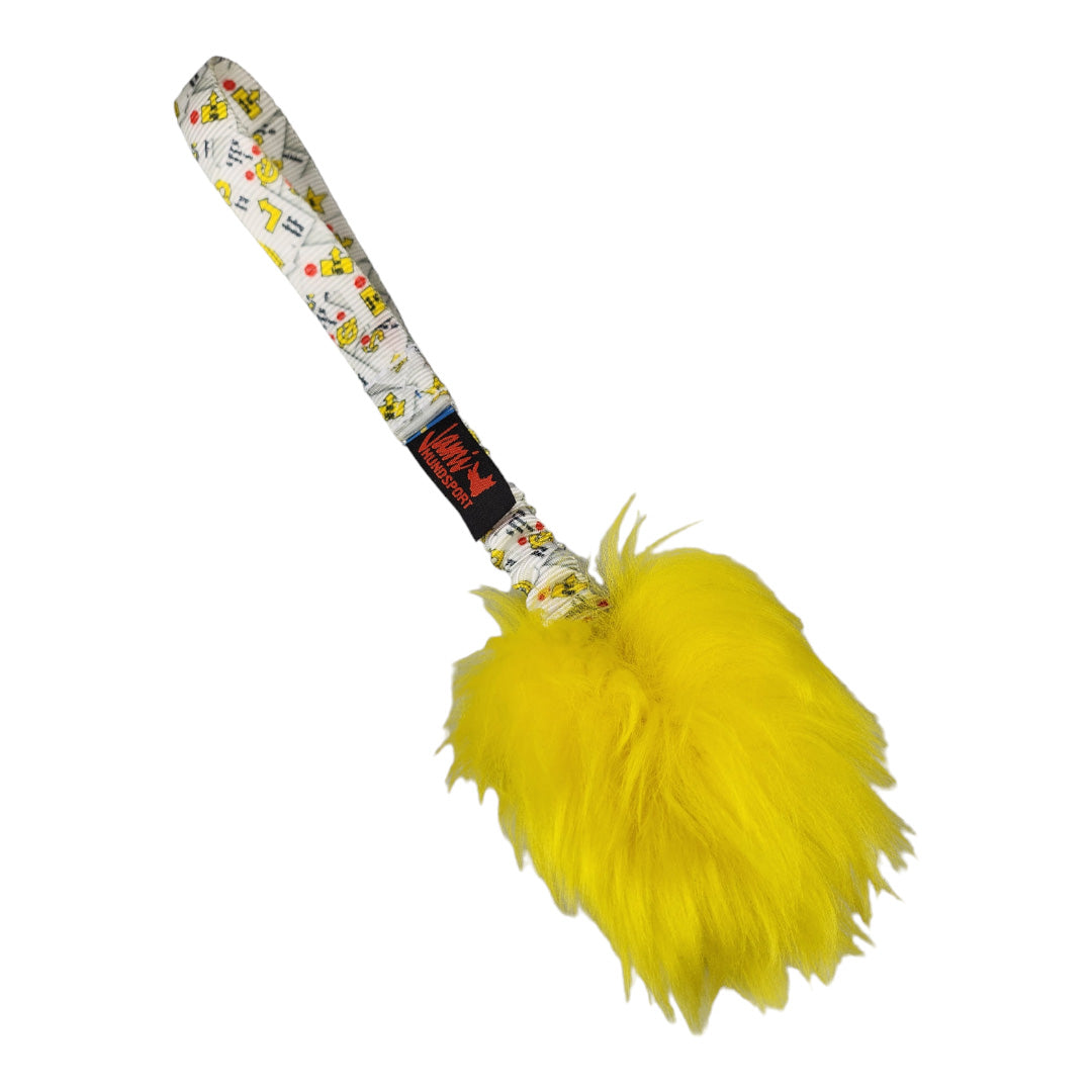 Fårskinnet är 10 cm och fastsytt på ett expanderband med RALLYskyltmönster. Totala längden på denna läckra belöningsleksak är 36 cm