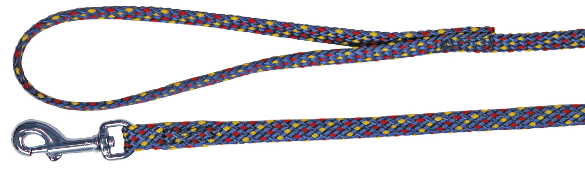 Rött/blått/svart, prickigt, dubbelvävt polyesterkoppel. Perfekt som första koppel till valpen. Kopplet har pistolhake som är lätt att knäppa på och av.